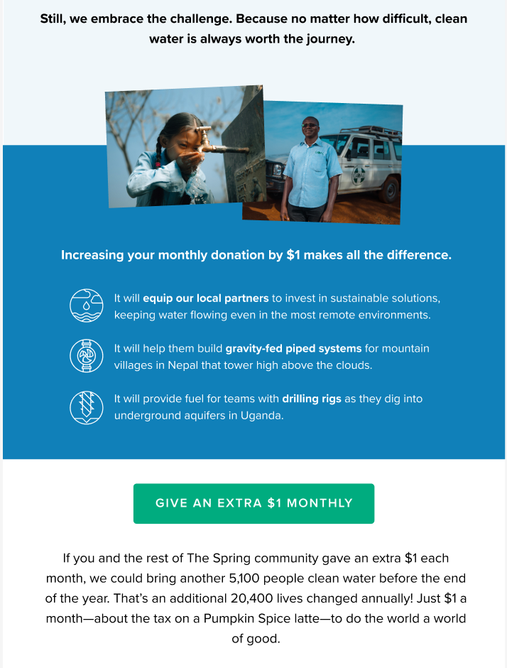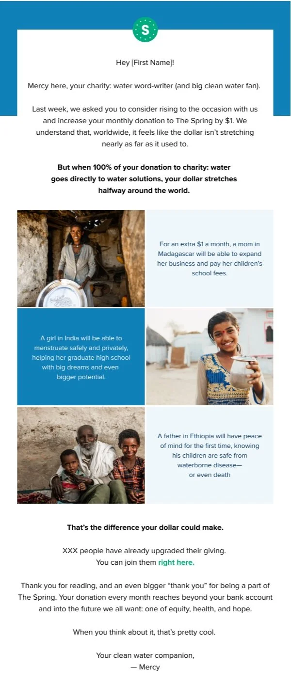 This campaign resulted in more than 2600 people increasing their monthly giving within three weeks of launch — a first in brand history. Economic outperformed Emotional messaging by 85% with 94% confidence, creating opportunities for future messaging directly addressing inflation concerns.